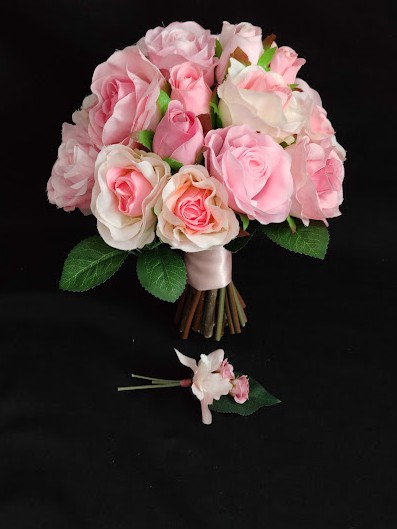 - Gerçek dokulu pembe güllerden tasarlanmış zarif gelin çiçeği