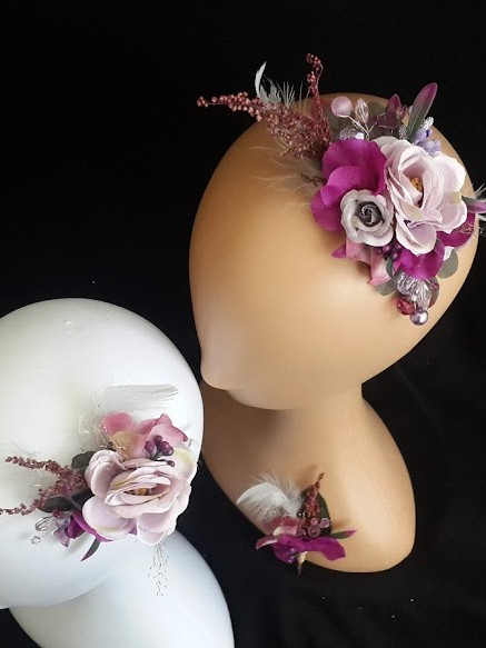 Yapay çiçekler, renkli boncuklar ve çiçeklerden tasarlanan saç aksesuarı